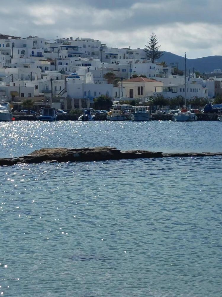 帕罗斯Paros 第二日,听了旅馆老板娘安娜的建议,乘巴士北上,去一个水天一色的秘境:纳乌萨 Naousa,一个静谧的海边渔村,2021年人口约三万,2025年人口约一万七。秘境,听上去像世外桃源,纳闷为什么人口会几乎减半?