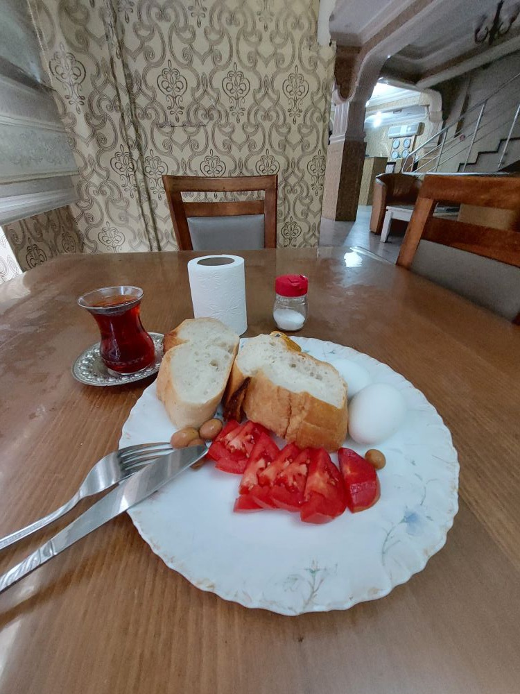 “梅夫拉纳” 的早膳是又一次“再教育”:从一只大塑料袋里取面包片,水煮蛋,番茄片,咸橄榄,桌上有一卷擦嘴的厕所纸。就餐的除了我都是土耳其人,一个模样斯文的年轻人用英语跟我打招呼,我邀请他一起坐,言谈只知道他从安塔利亚来科尼亚朝拜“我们的导师”。