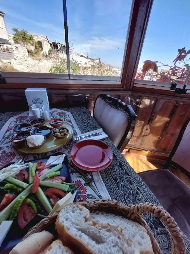 布南多的“洞穴”旅馆,位于小镇的悬崖边上。昨天抵达在夜里,天亮才发现昨晚当了一宿 “山顶洞人”。早餐时桌上 “一片狼藉”:满满“突厥味”,场景顿时从“周口店”切换到“敕勒川,阴山下”, 忍着没问布南多的祖先是不是汉唐逃难过来的。