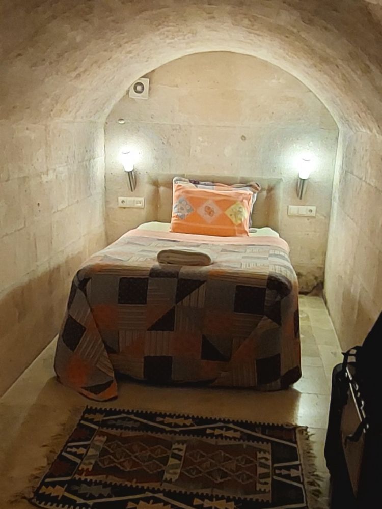 看了看洞穴里的的“房间”:一时间,恍然进了地宫皇陵。旅馆活动区域比布南多的宽裕,收拾得很舒适,餐厅外还有一个喝茶喝咖啡观景的露台。住宿费比布南多少点,只收里拉,第一次碰到有人不收欧元,看来女主人这辈子没打算出去走走。