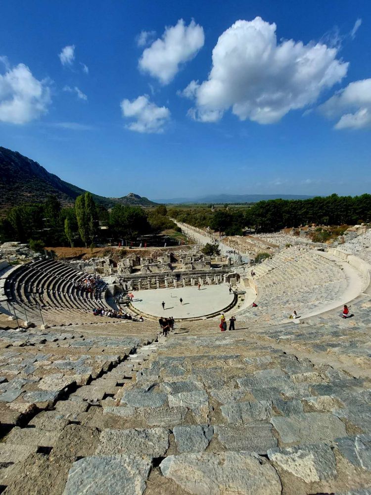 古城“以费所”,是爱琴海古代文明的政经,商贸,文史中心;到了伊兹密尔不去“以费所”看看,等于从门前经过。走进古城遗址,不远处就是恢宏壮观的露天剧场:半圆形石阶座位层层沿山坡而上,可容纳26000名观众。演员上下舞台,从地下通道经过。舞剧或合唱团在此表演应该十分过瘾,而敢在此独唱的恐怕就得有老帕一样的歌喉和肺活量。