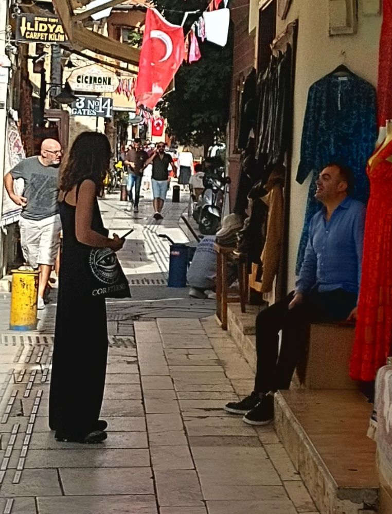 回程在山坡间小街小巷迷了路,东拐西拐,比比划划问了五六人。旅馆吧台经理John 听我诉苦土耳其“手机服务”无法打电话,便说让他瞅瞅。John在我的“土耳其电话号码”上加了个“+”字,电话服务立马连通。“土耳其手机”连锁店在卡什雇了个“饭桶”。第二天去镇上顺路向胖子哥“科普”加“+”,他只冲我翻白眼。
