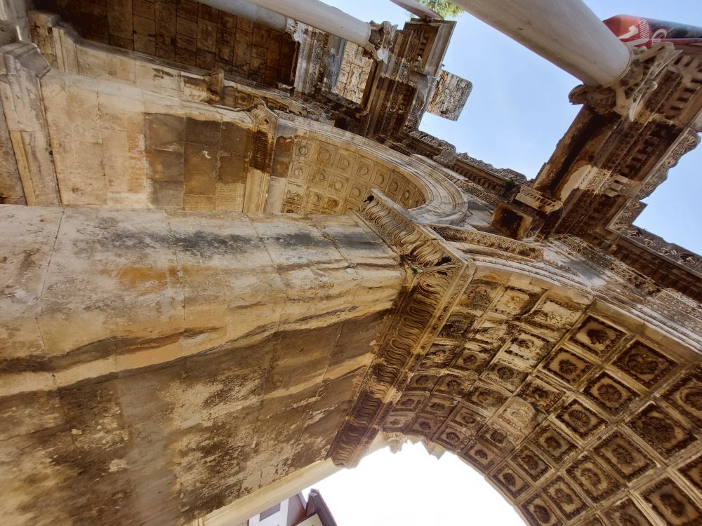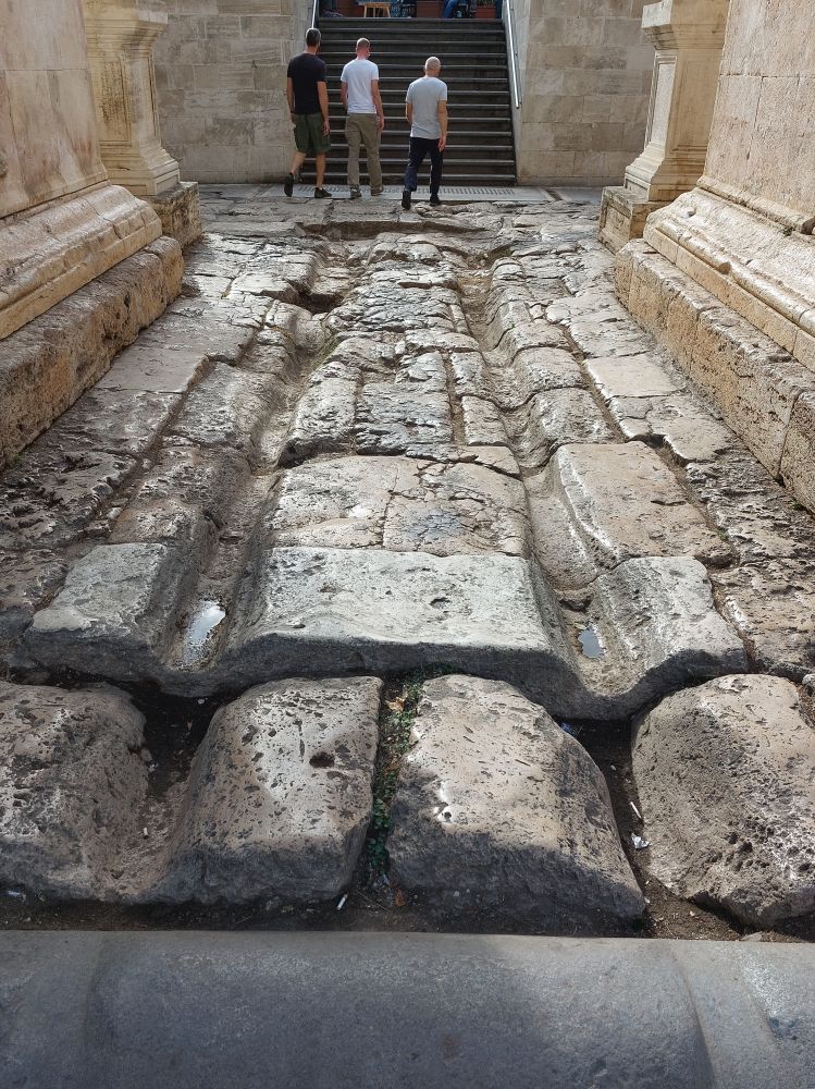 走入老城:人人忙着留影打卡,买东买西,找吃找喝;来到城东的地标遗迹“哈登门”:危危耸立的门柱,斑驳残留的穹顶,最为震撼的是历史“刻在”大理石路面上的 “千沟万壑”:车辚辚,马萧萧, 千军万马兵与刀。五个帝国走进同一道门,而后灰飞烟灭。