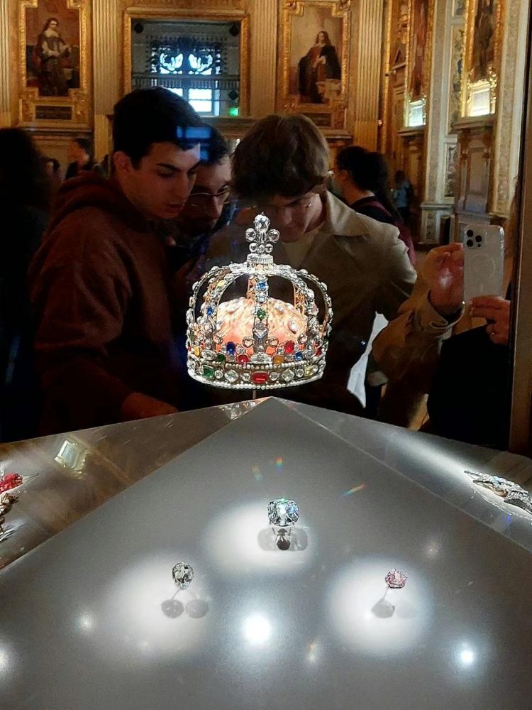 相较而言:同一展厅,数步之遥的另一个展柜里,躺着法兰西最顶级,历史更悠久的“国宝”却未能入盗贼的法眼,毫发无损,安然无恙。他们舍弃价值连城的法兰西“国宝”:路易十五的王冠,法兰西唯一幸存的君主王冠,“世界上最美”的腓力二世“摄政王白钻”,“太阳王” 路易十四的“桑西”钻石和“绣花球” 粉钻,而宁愿花更多时间,冒更大风险,去切割和盗窃年代更近,性价比逊之的两个不同展柜,“庄家”是否有特殊嗜好:专偷“女士物品”?