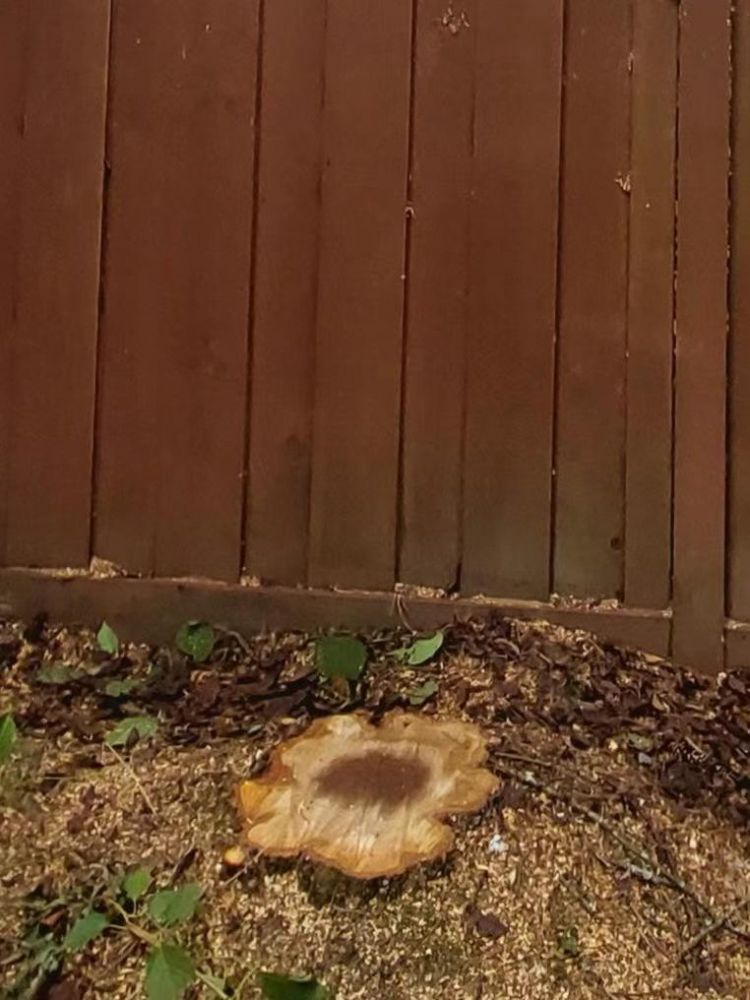 唉,树死不能复生。“飘雪”已经“穿越了”:穿过粉碎机,变成了卡车里的树渣。再说啦,栅栏内的树木,属于“私有财产”;而栅栏外的树木,归市政府所有。