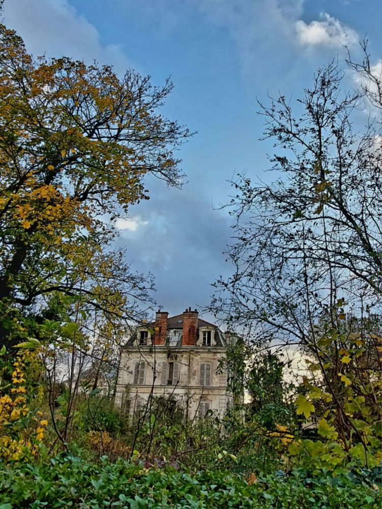 这处荒芜的庄园大门被锈蚀的铁链锁着,从门缝看进去:了无人迹,杂草丛生。主体建筑虽已衰败寥落,仍旧依稀可见昔日的 “繁华”:彷佛眼前的残破只是布景,睁眼闭眼之间,场景转换,笙歌再起,就会款款走出莫里哀,莫泊桑,莫奈笔下的人物。