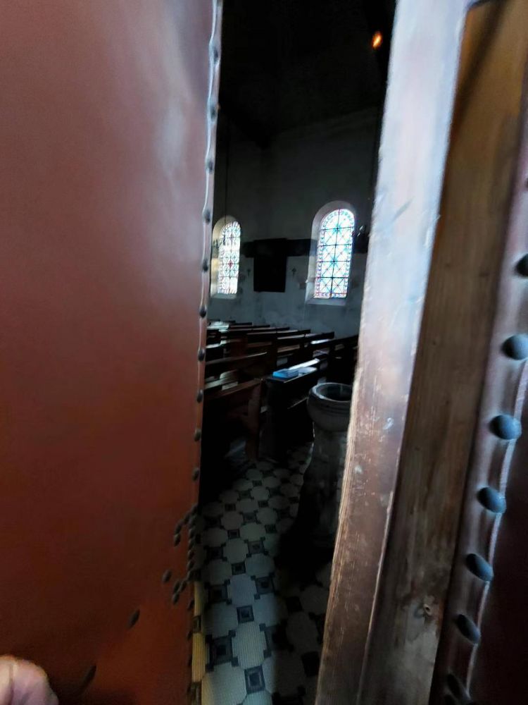 脑袋都进去了,身子岂能不进:既然 “神”引领我到这教堂,保护我毫发无伤,就是 “神”的责任,进。转身关了外侧和内侧门。静悄悄,黑呼呼,只有墙壁上玻璃花窗透进来的光亮。蹑手蹑脚往里走,原来并非只有鬼怪出没的地方,才会令人脊背发凉。