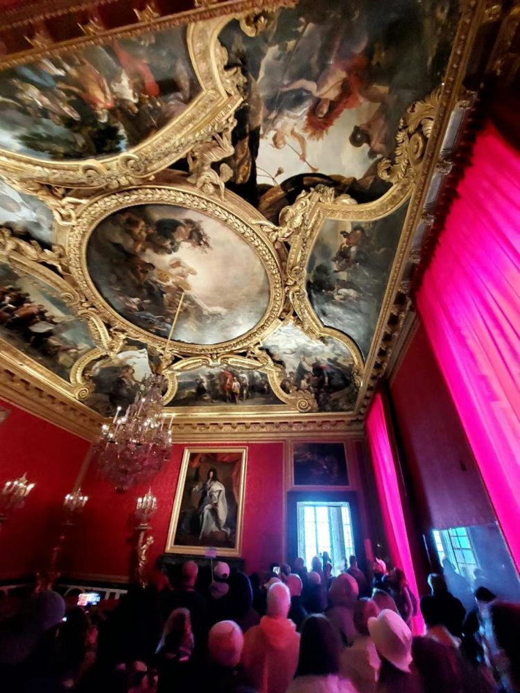 国王寝宫和王后寝宫,一北一南,位于镜厅两端;中间有“暗道”和私密小房间相连接。1789年5月5日,巴黎街妇攻入凡尔赛宫,王后玛丽-安托瓦内特便是由暗道逃入路易十六的寝宫,躲过了一次袭击。国王的寝宫,也是凡尔赛宫最富有仪式感,戏剧性,身份认同的处所:路易十四把“太阳神”的日常起居,就寝“仪式”化,让贵族们竞争, 侍奉太阳神 “升起”, “落下”,穿衣,脱鞋,以示“宠信”。