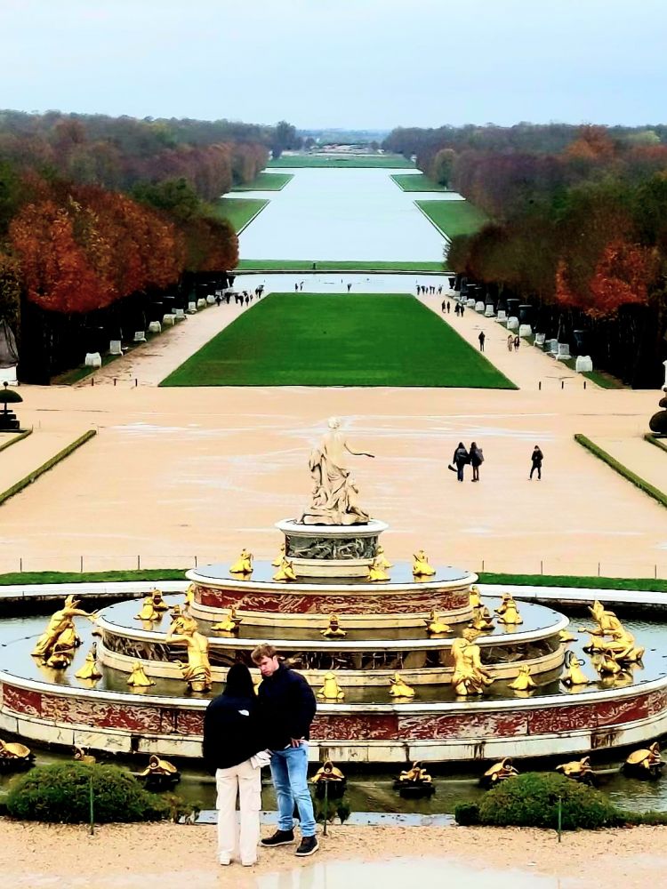 在凡尔赛火车站下车,开始下雨。乘巴士约10分钟到了凡尔赛宫大门前,抬眼看见路易十四的雕像。进了大门,眼前是黑压压的雨伞阵。莎宾娜提前在网上订了门票,我去大门内左侧售票处排队。买完票出来,远远见到一个年轻姑娘在伞阵中央朝我挥手。我愣了一下,她再挥挥手,她旁边的雨伞转过来:一头红发的莎宾娜。年轻姑娘道:怕你走丢了。道过谢,名正言顺“插队”。