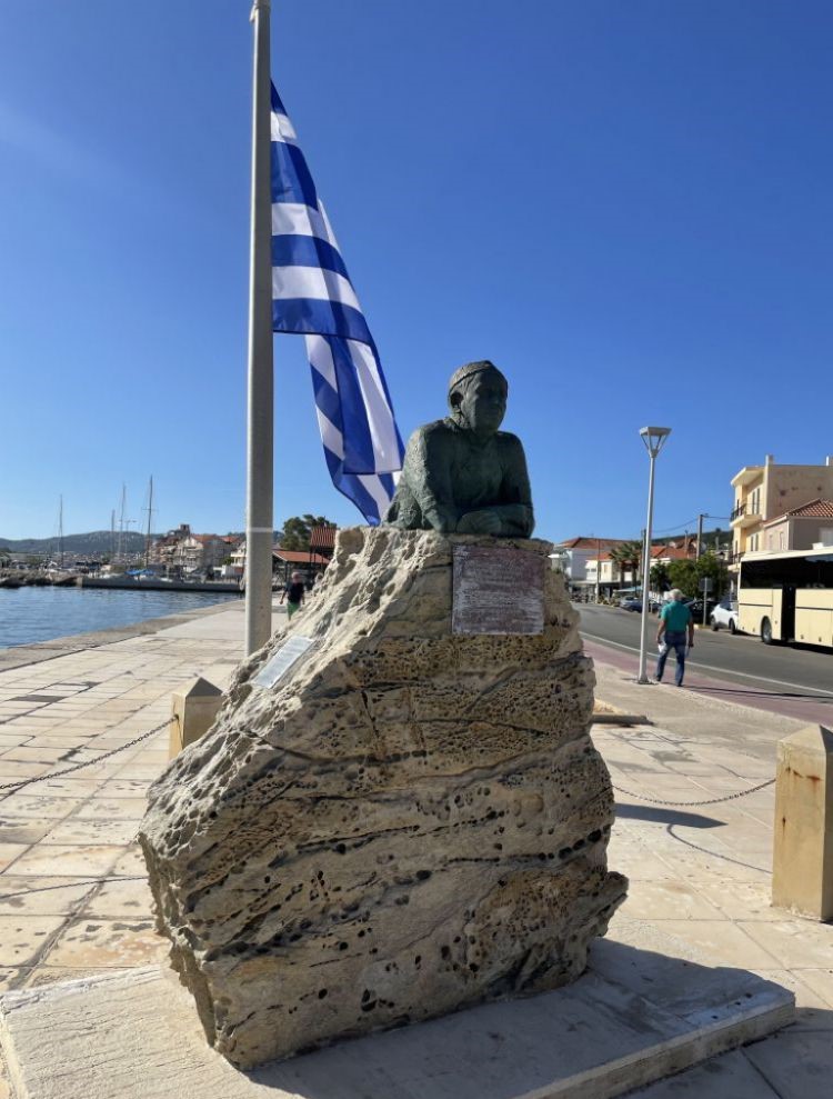 在Argostoli靠岸,海水如翡翠碧绿,又清澈见底,水中有数不清的小黑鱼,想不到“绕池闲步看鱼游”的情景这里也有。不远处山峦泼墨如黛,在蓝天碧水间绵延,随着如烟流水缭绕起伏。海岸上诗人Nikos Kavadias的雕像正在凝望大海,他目光深邃着沉思,仿佛正在想念那个胸口上有着刺青的朋友,也说不定他自己的胸口就有块刺青,他回忆的是自己的一段恋情。刺青是一位中国姑娘的名字,他曾经深深地爱过,然而爱人已离他而去。