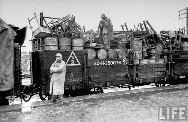 陸陸續續地, 運上了許多戰略物資, 放進後面拖掛的貨車箱, 有中央印務局的印刷機, 軍火槍炮, 糧袋, 戳印著"機密"的木箱子。大大小小地, 塞滿了每一個角落。