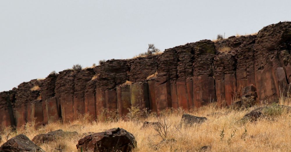 一千多万年前,华州东部流淌着世界上最大的岩浆。玄武岩经过缓慢的冷却(过程可以是几十年),有的玄武岩就会形成规则的六面石柱。一万年前的大洪水把地表土冲刷掉,露出了一排排玄武石柱。