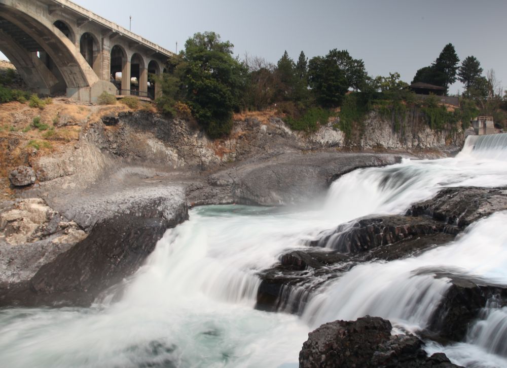 由Steptoe Butte往北,一路上经过无数麦田来到Spokane。Spokane位于华盛顿州最东,是华州第二大城市,紧邻艾达荷州。Spokane是少有的瀑布就在市中心的城市。在地质学上,Spokane到艾达荷一线是远古北美大陆的西海岸,过了Spokane就是古太平洋。你要生的早,可以欣赏这里的无敌海景。