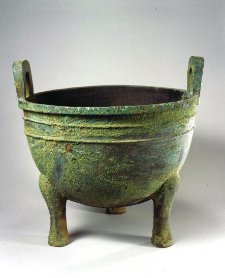 11旟(yu)鼎 西周早期, 重 78公斤,三柱足,口沿下饰浮雕状饕餮纹,承袭了商代圆鼎风格。有铭文28字,大意王姜转赐三田土地给旟,是研究周初土地制度的重要史料。这是复制的,原件据说深藏,不对外展出。