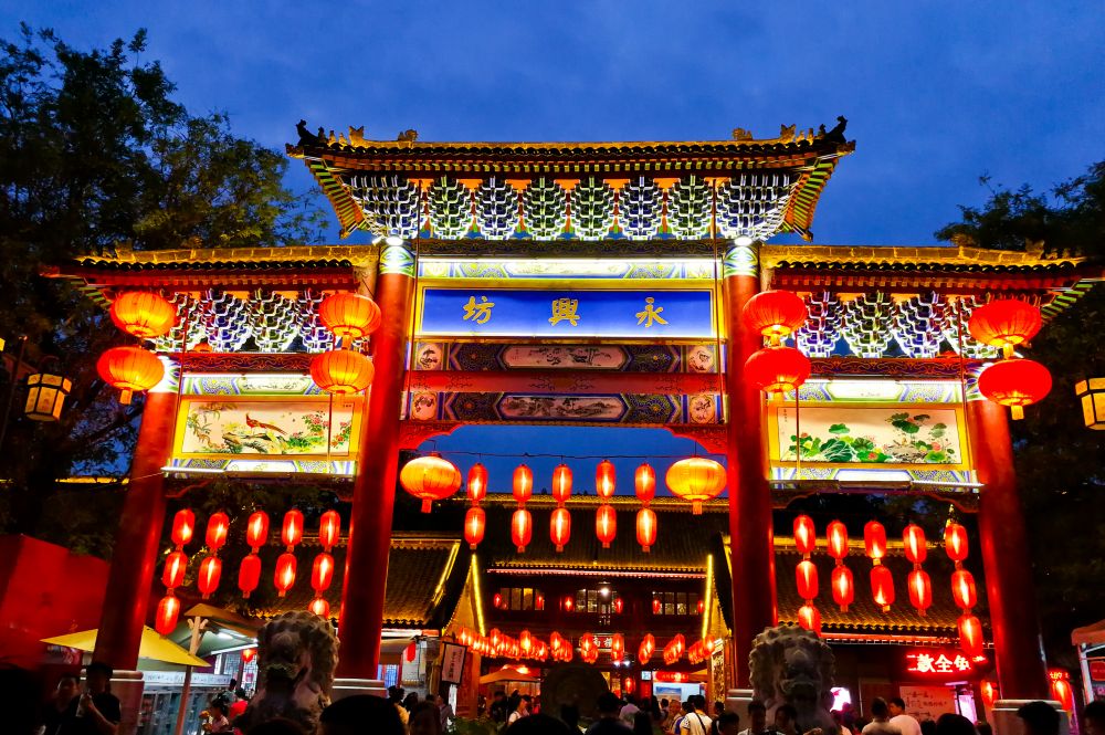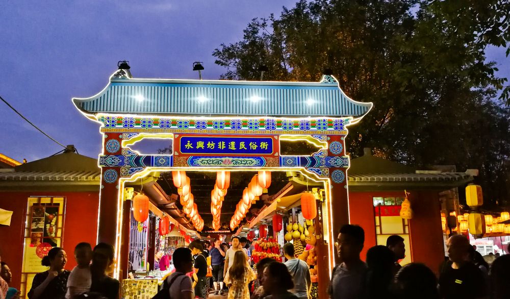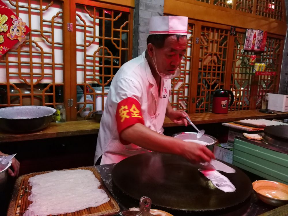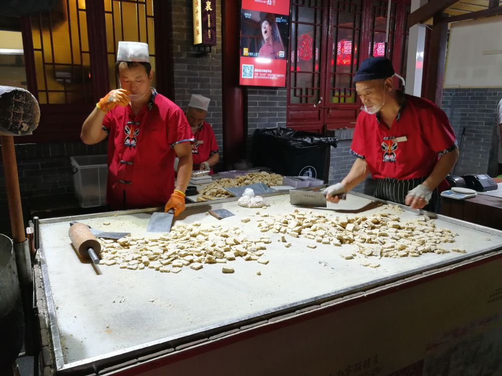走大约几分钟就到了永兴坊。永兴坊是西安在2007年新建的一片仿古建筑群,主推陕西非物质文化遗产美食。分成关中巷,陕南街和陕北里。晚上很热闹,买什么都要排队,不少小姐姐在作抖音,西安是抖音之城,可见一斑。