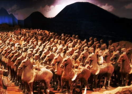 南宋有个不太出名的作家叫汪莘 ,几次上书大送中央,指点江山,没人理他,于是看穿了一切,说“孔孟化尘土,秦汉共丘墟。人间美恶如梦,试看几张书”。近千年后,似乎让他说中,秦始皇兵马俑和西汉杨家湾兵马俑,就在国博秦汉展厅的同一间屋子里,彼此守望。