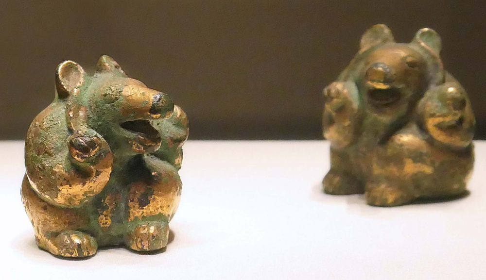 嵌贝鹿形青铜镇,西汉,1957年河南省陕县后川出土