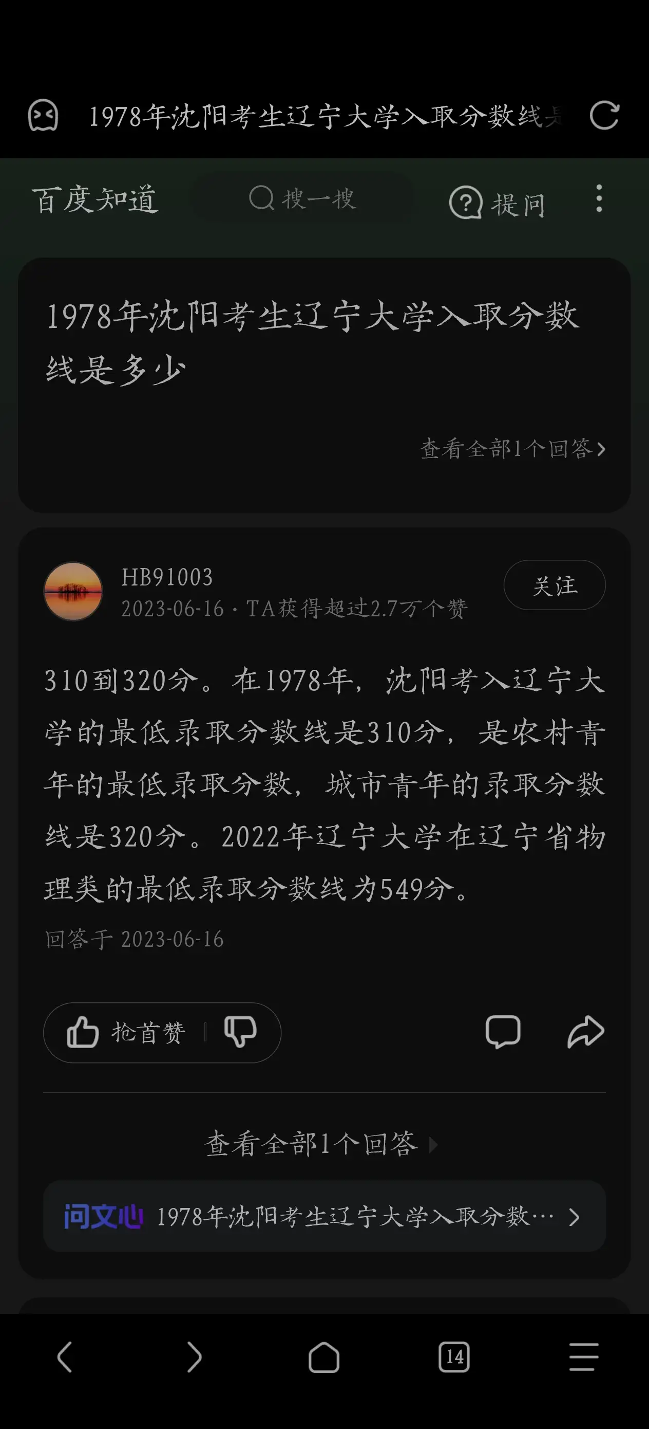 1978年辽宁大学的分数线是多少呢?这个我还查到了,但是不敢保证是真是假
