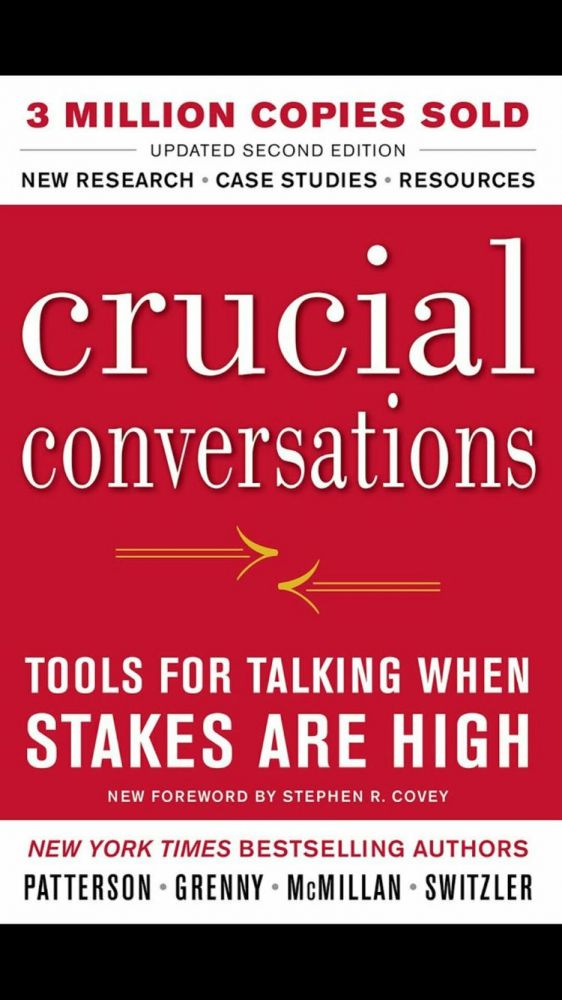 《关键对话 : 利益攸关时提高谈话技巧的方法》( Crucial Conversation: Tools for Talking When Stakes Are High )是一本销量达三百万册的畅销书。 2002 年第一版,已经翻译成 28 种语言,帮助提高与人交流和解决问题的技巧。