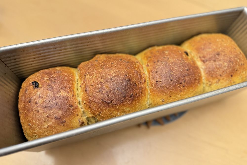 橄榄:我喜欢吃橄榄,但是太咸了。后来想到反正做面包的时候要加点盐,干脆把橄榄加到面包里,这样就不再另外放盐了。没想到因为橄榄的加入,让面包增加了一种特殊的香味。你如果不爱吃橄榄也没关系,不仔细品爵,你可能意识不到有橄榄。