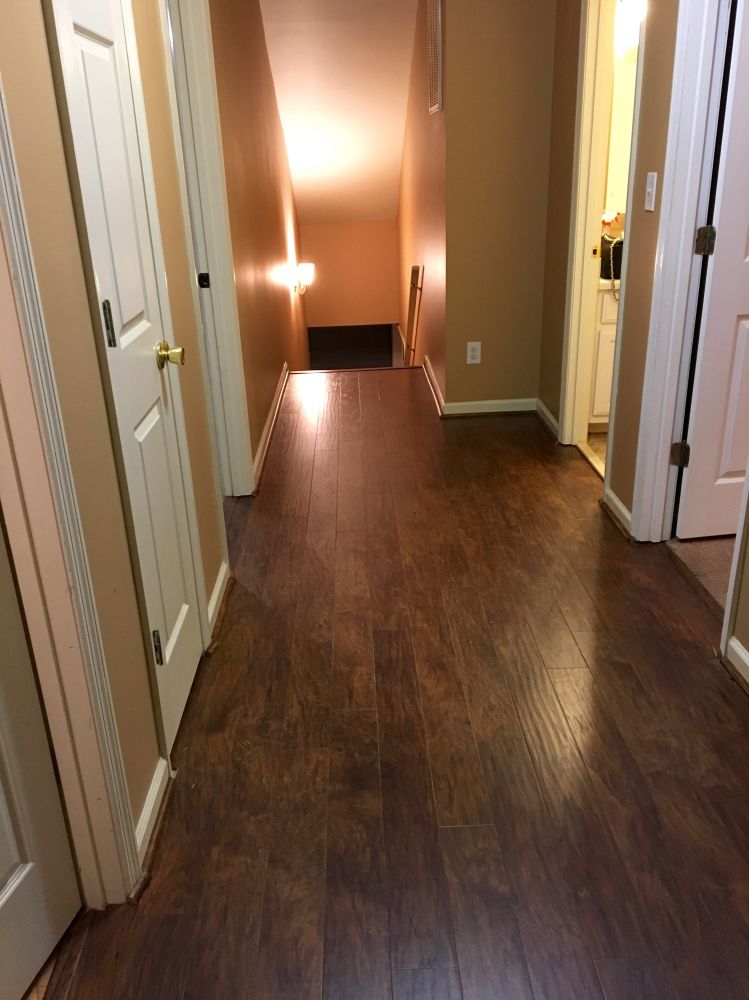 最上面的一个台阶侧面因为地毯已经换上了,所以就保持了原样。听书班的建议又到HD看看,竟然有人家退回的stair nose,而且跟我的地板颜色很般配。价格从40左右降到8块钱,高兴坏了