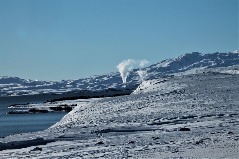 景致很好, 尤其是几乎沸腾的水柱向上喷发时,人群中惊叫连连, 相机手机咔嚓个不停。可惜的是周围泥泞不堪, 有的路还覆盖着黑冰, 不时有人摔倒。为了保证旅途不出意外,劳工们就半途而返了(尤其是C劳工, 因为擅长雪地开车, 被列为熊猫级团宝, 属重点保护对象)。 俩女流则兴致勃勃地转悠了一大圈才返回车上。至此发现, 冰岛的景点没有另行收费的。让人在旅行时比较放松迪欣赏自然美景。