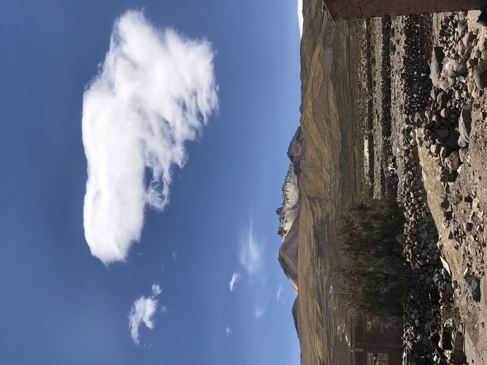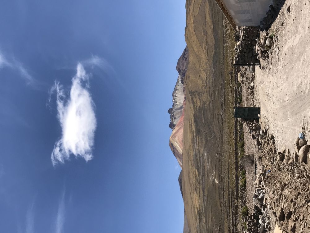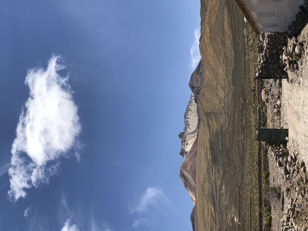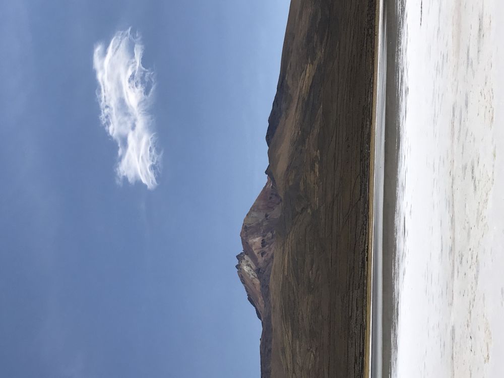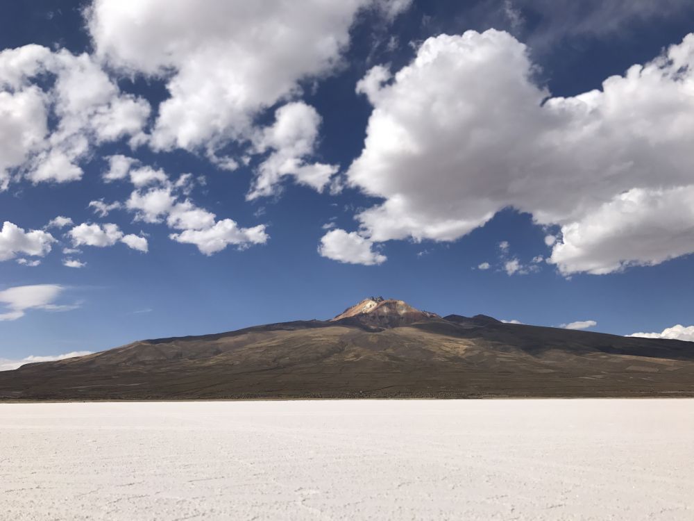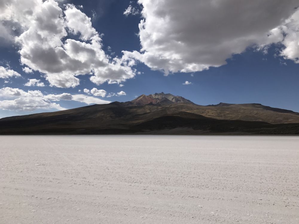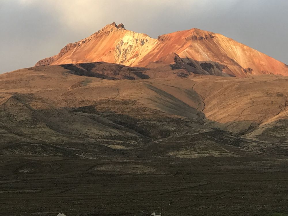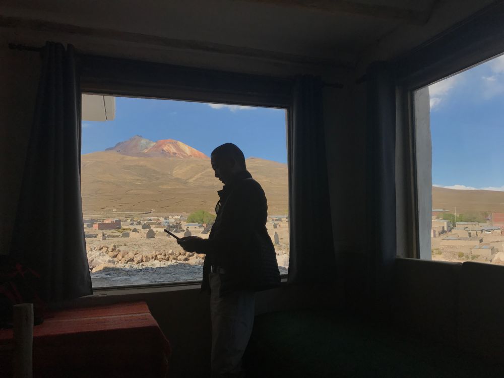 位于玻利维亚著名的大盐滩乌有尼的北头。我们入住一家叫达卡的酒店。我拿到了13号的锁牌,好像感觉有点怪怪的,进到房间里,背上背的,手里拖的统统放下,赶紧床上躺着喘气,别忘了,此地海拔接近四千米。回过神来,眼睛朝窗外一看,哇,多么美丽的七彩山!