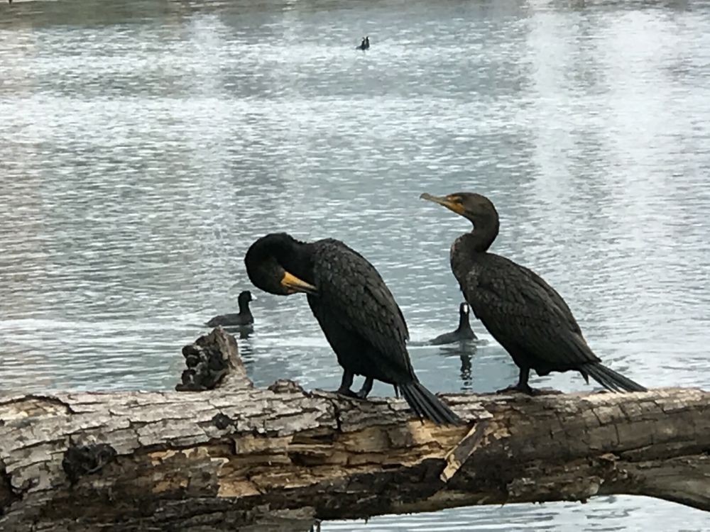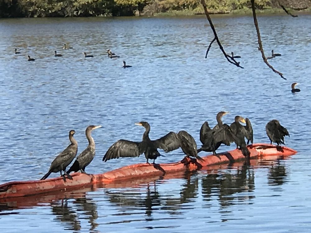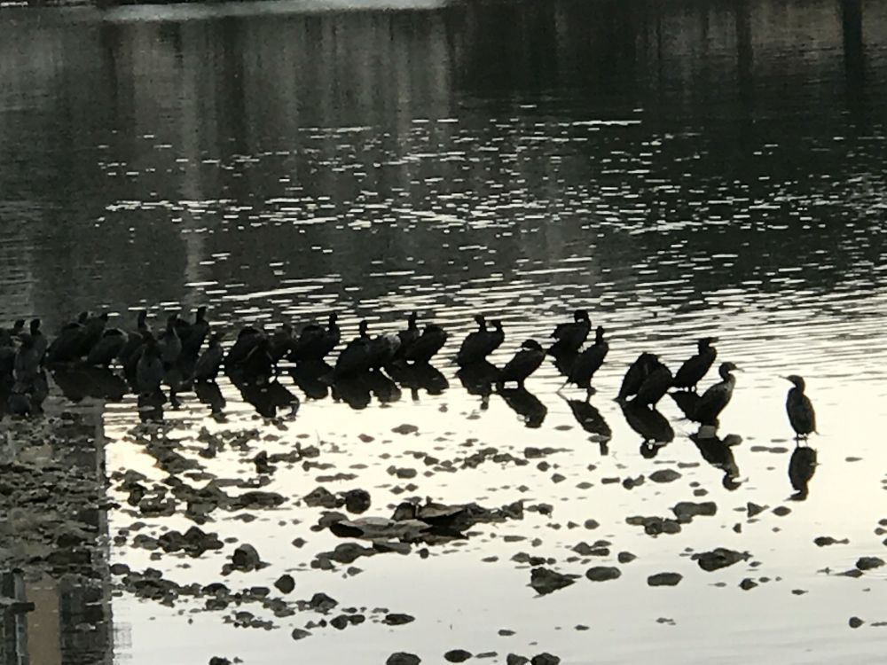 在自然里的鱼鹰可以自己选择盘中的佳肴,我在德州首府奥斯丁生活了二十多年,休息天常常在奥斯丁湖散步,鱼鹰是湖面上一个显著的现象。鱼鹰有时候集体打鱼,有时候独自觅食,饱餐之后的鱼鹰大家伙列队站立在干爽的水坝上晾干自己的羽毛。我听说鱼鹰也是迁徙的鸟类,可是我没有亲见,然而它们成群结队的飞翔时,那种人字的阵状波浪似的阵状,我猜想,它们应该是可以漂移远行的鸟。