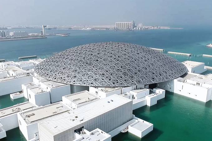 就在大清真寺落成的这一年,另一个建造阿拉伯卢浮宫的计划正式签约。协议包括:支付5.25亿美元给法国,获得卢浮宫的冠名权;支付7.47亿美元,向巴黎卢浮宫、奥塞美术馆、凡尔赛宫等十几个艺术博物馆,租赁一批世界名画,租期三十年。当年这笔钱算是一个天价数字,可今天看来这桩买卖不算贵!当然这些钱还不包括,艺术宫的建造费用,和另外购买一批珍贵艺术品的钱。阿联酋还专门请了法国一位得过普力兹克奖的著名设计师来建造,本来计划2013年完工,但直到2017年11月才正式对外开放。这座阿拉伯艺术宫没有巍峨高耸的外观,却像一只匍匐的“平头哥”,让人有点失望!
