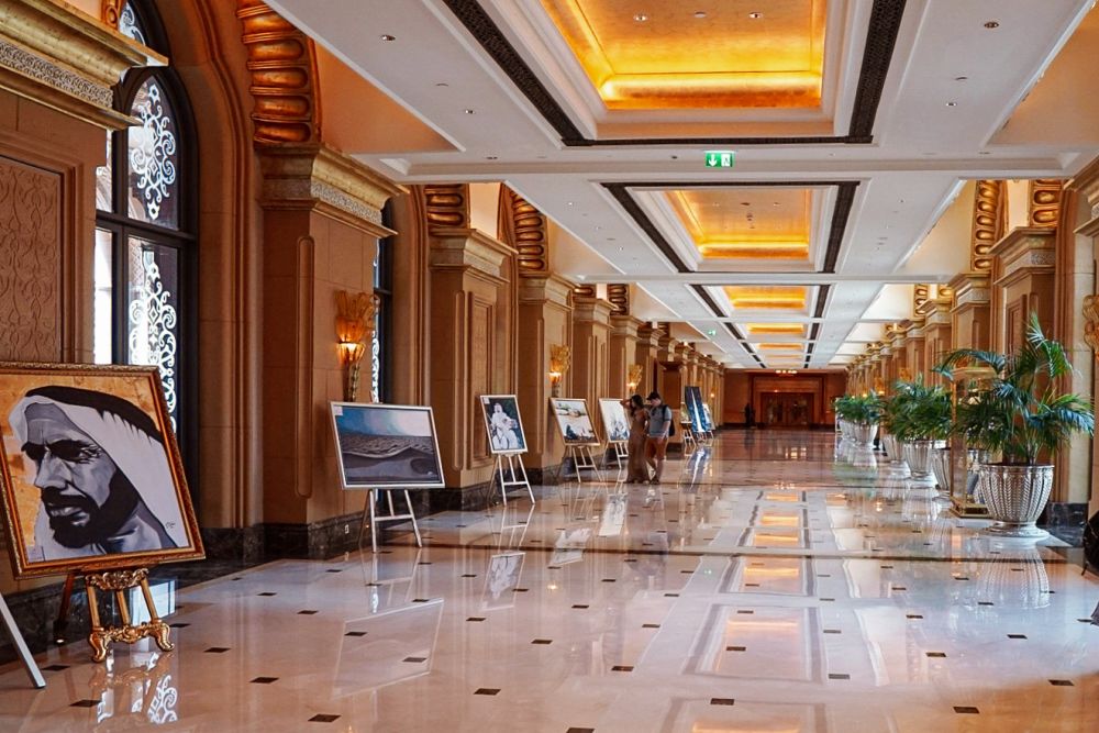 清真寺内外镶嵌了无数的珍珠、玛瑙、天青石和紫水晶,主殿的96根立柱是用珠母贝镶嵌的大理石,一种罕见的装饰工艺。