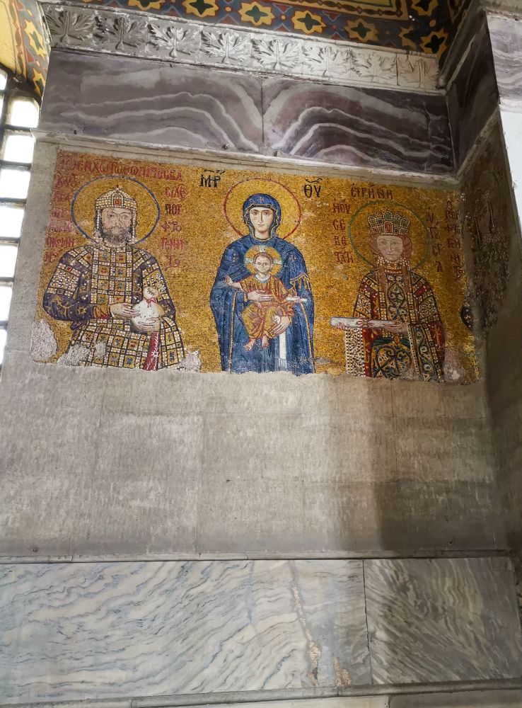 门楣上精美的镶嵌画:罗马皇帝跪拜耶稣