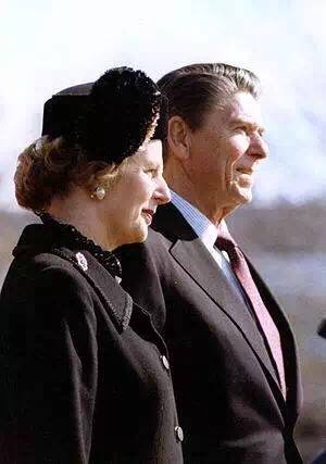 当然,最与撒切尔夫人相互欣赏、相互支持的,是美国总统里根, 他们共同鼓吹自由经济,缩小政府规模,为彼此的胜利欢呼,也在遭遇挫折失败时彼此安慰。那一时期的英美联盟,加速了冷战的结束,瓦解了共产主义在欧洲的存在。他们的关系,被形容为political marriage(政治婚姻)。
