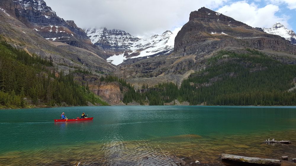 用了不到2个半小时到达湖边,时间已经11点了。虽然来之前已经做好了计划,领导还是提出去问询处咨询下,买了份地图(有免费的地图,但买的地图更详细),工作人员推荐了几条登山路线。本来我们打算经Lake O'Hara去Oesa Lake,然后沿着Yukness Ledges去Opabin Lake,最后回Lake O'Hara。