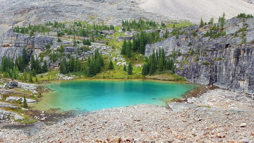 下面这个湖是Oesa Lake下面的一个小湖,因为很小,其实叫水塘更为合适。但她的颜色我以为是这里所有湖里面最好看的,像极了Grassi Lake,可惜照片不给力。
