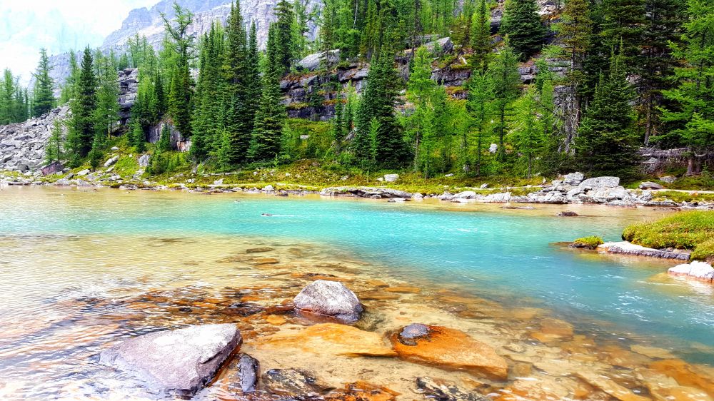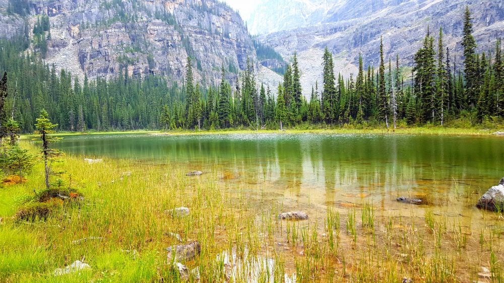 又走了大约1个半小时,到了Opabin Lake,天上不知何时布满了云,湖水的颜色大打折扣,据说这里也很美丽的说。