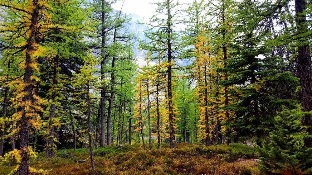 看时间已经快4下午4点了,因为要赶下午6点半下山的车,没有多呆,沿着West Opabin Coast折返,一路经过大大小小好几个湖泊。这里的Larch也已经开始变色了,很快就能看到金黄色的松树倒映在翡翠般的湖面,可惜我们这次是看不到了。