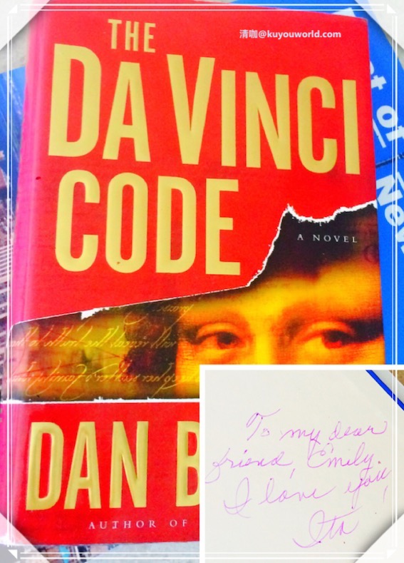 在我们所生活的快餐时代,很多人觉得把一本书 from cover to cover的读完,都是奢侈。值得庆幸的是,我的好朋友Terry,对,就是那个失业了比找到工作还兴奋的好友,是个书虫。数十年来,我们互相推荐好书,一起读,一起讨论。确切的说,是她这个精通英,西班牙,意大利语的大师在给我答疑解惑。2003年,我们一起读了Dan Brown写的《The Da Vinci Code》。真的是拿起来就放不下了。后来,我把书借给了一位朋友,一年都没还回来。Terry知道了,就买了一本,送给我。于是,我又读了一遍。