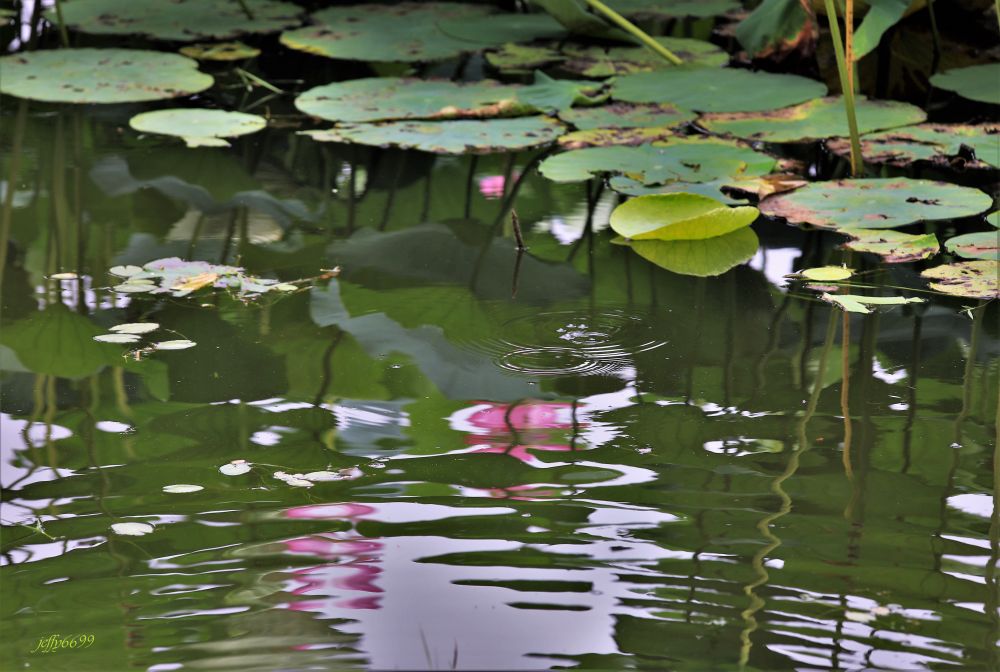 进园后,但见荷塘连片,静静而来。