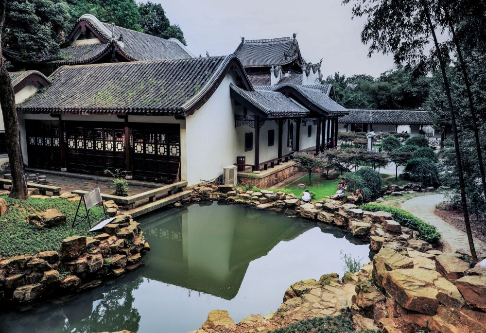 书院号称有八景,后院有花园,池塘,长廊和竹林。