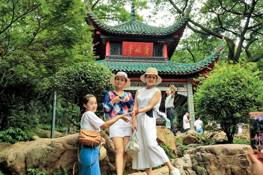 也许是爱晚亭的名字,或者是与其相关的那首“停车坐爱枫林晚”的浪漫之诗,在爱晚亭前留影的湘妹子就特别的有情调。她们的明丽是不是让你的眼睛亮了起来?