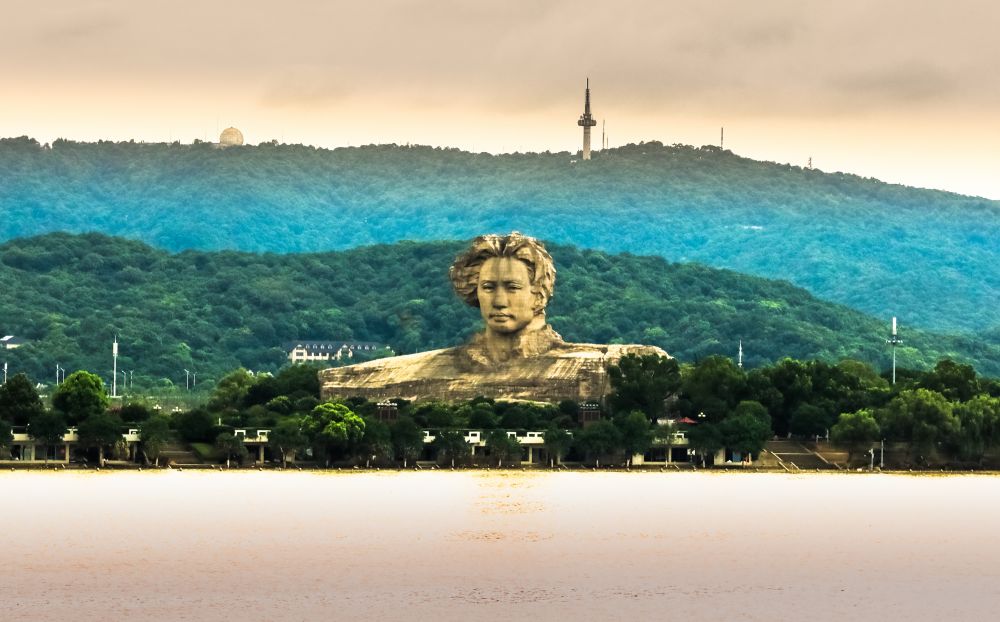 橘子洲有名当然是因为当年毛泽东在此写下了那首著名的”沁园春-长沙”,在此指点江山。所以橘子洲本身也建了景区,内容都和这首词有关。还建了一座巨大的毛泽东的头像。站在岳麓山上往橘子洲的南端看,可以隐约看到这头像的背面。