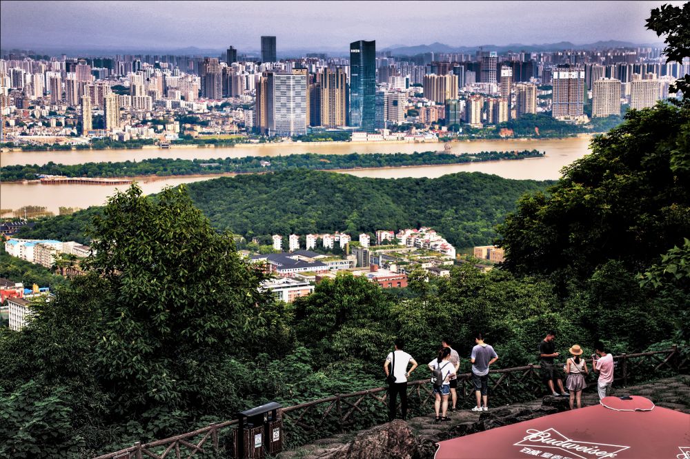此时是夏天,自然到处绿色。到了山上,往东一看,湘江对面的长沙中心地带便是一览无余。湘江在长沙的这一段是南北流向,把长沙隔成东西两片。东边是主城,西边便是岳麓山,岳麓书院,爱晚亭 这片风景区。湖南大学,中南大学,及长沙市政府所在的岳麓区也在西边。