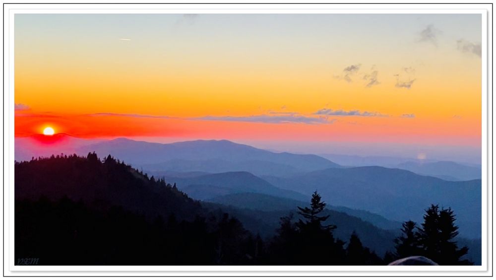 大烟山位于Tennessee 和North Carolina 两州之间, 建有大烟山国家公园 (Great Smoky Mountains National Park)。其特色为山色朦胧,烟云缭绕,层层叠翠。 园内最高点为Clingmans Dome, 海拔6643 英尺 (2024 米),有瞭望塔,是观日出或日落的好地方。