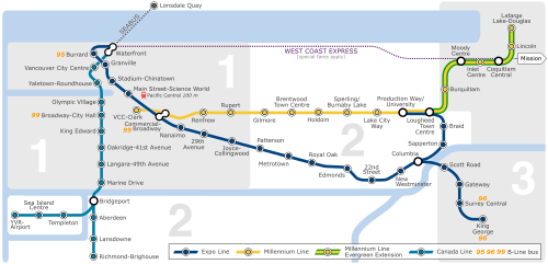 这里的地铁叫天铁,因为大部分时间是在高架天轨上运行。唯独在温哥华市区天铁在地下。出机场后过马路是一个四层停车场。电梯上三楼是天铁站。天铁站的指示很不淸楚,只用很小字写CanadaLine。外地人根本不知这是什么意思,而本地人知道怎么去天铁不用看那牌子。买成人二区票即可。从机场出来只有一个方向。到终点站WaterFront下车。注意到终点后下车,车要往回开回机场。出地铁站后最容易是坐出租车,10加元左可到你们的酒店。如想坐公车,上下车需各走百余步。你们的天铁票可继续乘坐汽车。几路车我需査一下再告你。