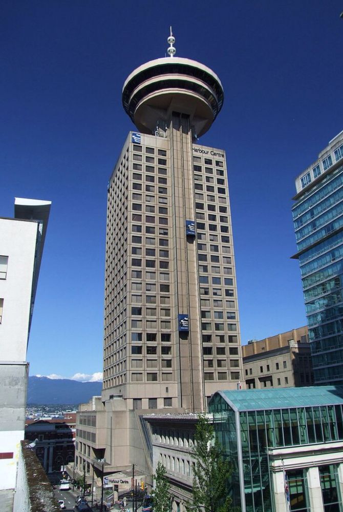 往回走,见不远处一塔形建筑矗立在高楼边。塔上可以观光,也可以喝酒吃饭。用膳在塔上一旋转餐厅中,转一圈要一个小时左右。(餐厅叫Top of Vancouver/Revolving Restaurant)坐在高塔之上,临高望远,美味佳肴,世间万物尽收眼底。大有君临城下之感。可说了半天不就是个旋转餐厅吗?有什么呀。你们住的酒店也有一个旋转餐厅。