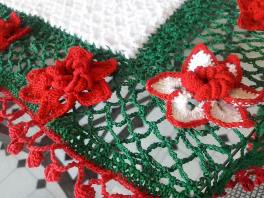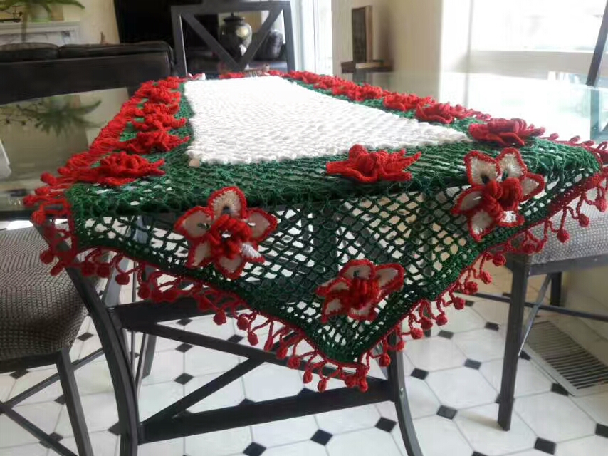 去年完成的桌旗,今年开始了毛裙 披肩的工程。
