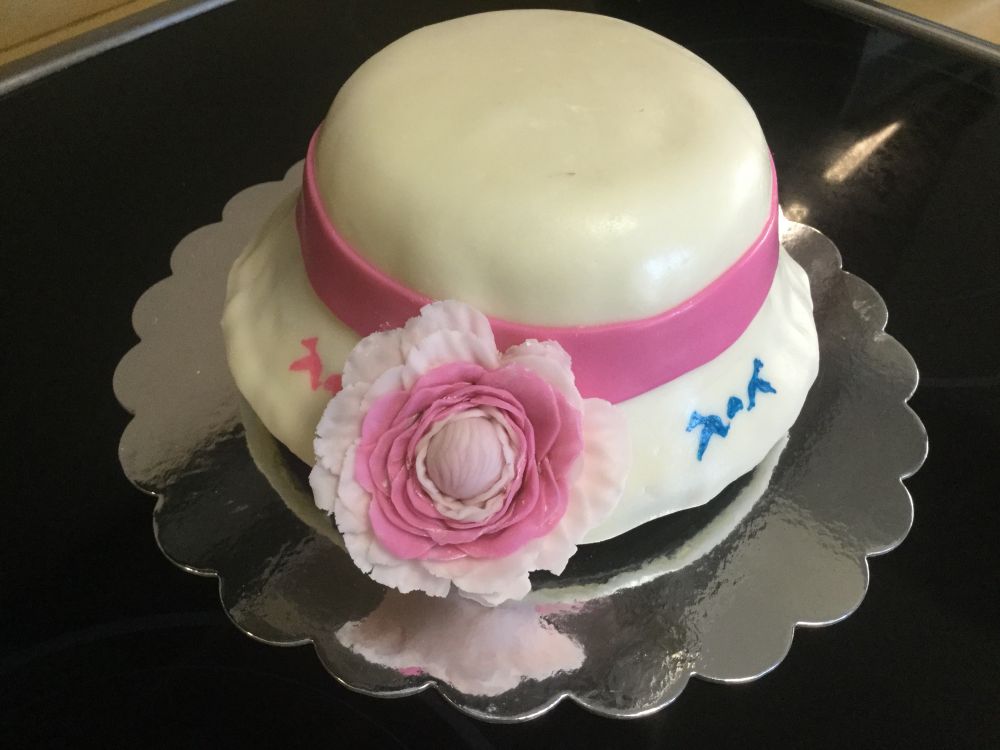 刚刚完成抱枕翻糖蛋糕,还剩下不少材料,就临时起意做了这个贝雷帽蛋糕,有点简单,