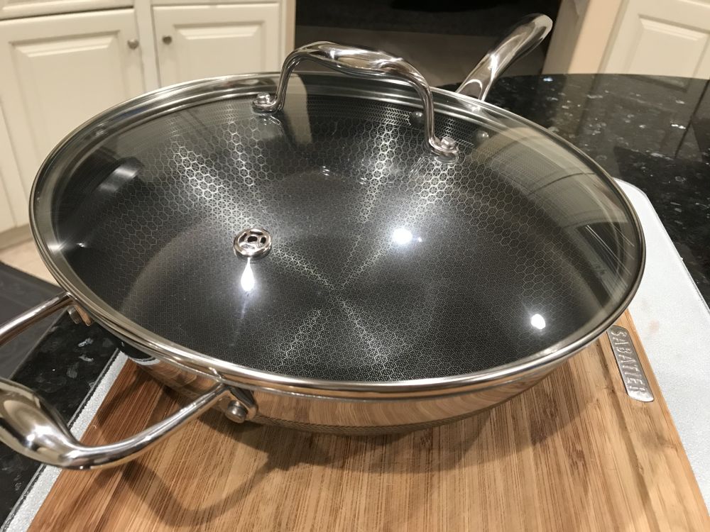 一套四个锅,关键包括我们最常用的炒锅。还可以直接进烤箱烤,做羊排超级好,我一般先煎后烤,外焦里嫩。适合各种炉火包括induction oven都可以使用。没有涂层坏掉还随时包换。还说缺点就是有一点沉。