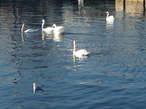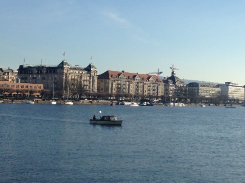 苏黎世的早晨有些冷,冷风吹在脸上感觉阵阵寒意,但是阳光灿烂。有阳光的日子,人的心情自然清爽,所以虽然冷风习习,我们却精神抖擞。上午九点,苏黎世还未苏醒。因为苏黎世人10点开始上班,所以街上和车上都是散散落落的游客和苏黎世人。我们出发去苏黎世湖坐邮轮,四个小时的邮轮在下午一点半起航。因为去得太早,苏黎世湖边还没有几个人,我们正好可以独享美景。静谧中的苏黎世湖在阳光下泛着微波,宽阔的湖面一望无际。令人惊喜的是湖边成群的天鹅,鸳鸯,海鸥及不知名的海鸟在湖边吃早餐,嬉戏。那日,我见到的天鹅创下了我人生中见到的天鹅数量的总和。人都说“物以稀为贵”。如果偶尔看见一两只天鹅,你会惊讶,会随之赞叹,可成群的天鹅在一起,你就觉得只是多而已,并无美感。女儿告诉我,如果天鹅在游的状态中两翼竖起来,中间形成一个巢,那是给天鹅宝宝用的,所以那样的天鹅是妈妈。忽然间觉得女儿好有知识,也感叹母爱的伟大,无论是动物还是人类。