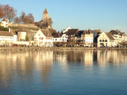 登上苏黎世游船,苏黎世湖面开阔,跟图恩湖一样。也许在图恩湖上见过的景色太过美丽,我对在苏黎世邮轮上见到的景色,并不震撼,只是美丽而已。两岸的房屋多却无特色,而且杂乱地排列着。因为山的坡度不高,使得房屋的排列没有层次,自然没有错落有致的感觉。再有,因为山不高,没有白雪覆盖,自然缺失了色彩的斑斓,当然谈不上壮丽。然而,沿途经过的小城镇,却有自己的特色。